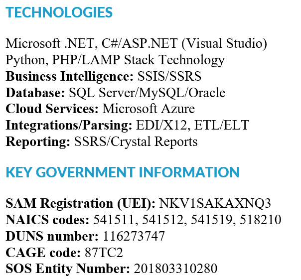 Constant Tech Systems LLC, a Veteran Owned Small Business (VOSB), is a full-service software development company that offers comprehensive IT services. Constant Tech Systems is interested in serving as a subcontractor on technology-focused projects and RFQs issued by public-sector or enterprise clients. Constant Tech Systems works collaboratively with prime contractors and performs a commercially useful function in accordance with procurement requirements.